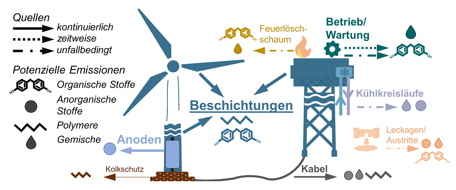 Werbung BSH gibt Studie über 228 potenzielle Substanzen bekannt die im Meer freisetzen könnten Behörden-Mitteilungen Offshore Ökologie Windenergie 25. August 2025 Hinweis: Die Bildrechte zu den Beitragsfotos finden Sie am Ende des Artikels Offshore-Windparks: Mögliche Freisetzung von Substanzen und wie sich diese verringern lassen 228 potenzielle Substanzen in Literatur identifiziert, davon sind 62 umweltrelevant Technische Lösungen vorhanden, grenzüberschreitende Regulierung empfohlen Deutschland bei der Regulierung von stofflichen Emissionen führend Weitere Forschung zu Emissionen und potenziellen Auswirkungen gefordert (WK-intern) – Eine internationale Studie unter Leitung des Bundesamts für Seeschifffahrt und Hydrographie (BSH), des französischen Forschungsinstituts für die Nutzung der Meere (IFREMER) und des belgischen Forschungsinstituts für Agrar-, Fischerei- und Lebensmittelforschung (ILVO) zeigt, dass Offshore-Windparks potenziell über 200 chemische Stoffe ins Meer freisetzen könnten. Wie lassen sich diese Stoffe besser erfassen, bewerten und regulieren? Erste technische Lösungen und Vorschriften zur Reduzierung dieser Emissionen gibt es bereits. Dabei nimmt Deutschland international eine Vorreiterrolle ein. Doch europaweite Abstimmungen fehlen. Das internationale Forschungsteam führte eine Literaturrecherche durch und identifizierte anhand von Forschungsartikeln, Berichten und Sicherheitsdatenblättern 228 chemische Substanzen, die von Offshore-Windparks potenziell freigesetzt werden könnten. Dazu gehören vor allem Stoffe aus Korrosionsschutzsystemen (70 Prozent) sowie Öle und Schmierstoffe (10 Prozent), die für den Betrieb notwendig sind. Hinzu kommen weitere Emissionen, beispielsweise aus Kühl- und Feuerlöschmitteln. Der Großteil der Substanzen gehört zur Gruppe der organischen Stoffe (64 Prozent), gefolgt von anorganischen Stoffen (19 Prozent). Von den 228 identifizierten Stoffen gelten 62 als besonders umweltrelevant. Das liegt daran, dass sie auf Prioritätenlisten stehen, zum Beispiel bei der Europäischen Chemikalienagentur oder der Europäischen Wasserrahmenrichtlinie, die Stoffe nach ihrer Wirkung auf die Umwelt bewerten. Darunter sind Stoffe, die potenziell toxisch, persistent, hormonell wirksam oder krebserregend sein können oder sich in der Nahrungskette anreichern können. Wie viel tatsächlich von Offshore-Windparks freigesetzt wird und welche Auswirkungen diese Emissionen auf die Meeresumwelt haben, muss jedoch besser erforscht werden. Das bildet die Grundlage, um die Meere zu schützen und nachhaltig zu nutzen. Analytische Herausforderung: Wie viel kommt von wo? Aber wie lassen sich solche Emissionen in der Praxis überwachen? Die Vielfalt der Stoffe und ihre Verwendung in anderen Bereichen an Land und auf See erschweren es, die Auswirkungen von Offshore-Windparks eindeutig zuzuordnen. Daher sind komplexe Analysen erforderlich, um festzustellen, woher die Stoffe hauptsächlich stammen, wie viel tatsächlich in die Meeresumwelt gelangt und welche Auswirkungen sie haben. Dr. Pablo Zapata Corella vom IFREMER sagt: „Um zuverlässige Daten zu diesen potenziell freigesetzten Stoffen zu erhalten, benötigen wir modernste Analysemethoden, die sehr niedrige Nachweisgrenzen erreichen. Außerdem ist die Rückverfolgung von Verschmutzung in Umgebungen mit vielen potenziellen Emissionsquellen komplex und erfordert weitere Forschung.“ Eine Möglichkeit besteht darin, die Konzentrationen einiger ausgewählter Stoffe vor dem Bau und während des Betriebs von Offshore-Windparks zu messen, um etwaige Veränderungen festzustellen. Auch Modellierungen können dazu beitragen, die Verteilung und das Verhalten der Substanzen in der Umwelt besser zu verstehen. Bisher gibt es jedoch keine standardisierten Verfahren zur Überwachung dieser stofflichen Emissionen. Technische Lösungen: verfügbar, aber nicht verpflichtend Angesichts des zunehmenden Ausbaus der Offshore-Windenergie ist es von entscheidender Bedeutung, stoffliche Emissionen zu überwachen und ihre Auswirkungen auf die Meeresumwelt zu untersuchen. Gleichzeitig sollten diese Emissionen durch den Einsatz umweltfreundlicherer Materialien und Techniken reduziert werden. Die Studie zeigt auch, dass einige Emissionen technisch vermeidbar sein könnten, beispielsweise durch alternative Korrosionsschutzsysteme, geschlossene Kühlsysteme oder biologisch abbaubare Betriebsstoffe. Allerdings fehlen branchenspezifische Standards, wie sie beispielsweise in der Schifffahrt verwendet werden. Die Studie empfiehlt daher verbindliche technische Leitlinien, die für die Genehmigung und den Betrieb von Offshore-Windparks gelten sollten. Nationale Vorschriften vorhanden, aber keine internationalen Die Studie vergleicht ebenfalls, wie die USA, Großbritannien und Deutschland stoffliche Emissionen von Offshore-Windparks regulieren. Die Ansätze unterscheiden sich stark und eine umfassende Regulierung fehlt bisher. In den USA und Großbritannien bewerten die Behörden während des Genehmigungsverfahrens Umweltaspekte unter Berücksichtigung potenziell freigesetzter Chemikalien. Im internationalen Vergleich nimmt Deutschland bei der Vorgehensweise eine Vorreiterrolle ein. Projektträger müssen in Deutschland bereits in der Planungsphase ein Emissionskonzept beim BSH einreichen, das potenzielle Emissionen und Maßnahmen zu deren Vermeidung oder Reduzierung beschreibt. Nach der Genehmigung folgt eine detaillierte Emissionsstudie. Auch Konzepte für Abfall und Betriebsstoffe sind erforderlich und müssen regelmäßig aktualisiert werden. Das BSH legt verbindliche technische und umweltbezogene Anforderungen für Offshore-Projekte fest, etwa zur Abfallentsorgung, zum Korrosionsschutz, zum Abwassermanagement und zum Einsatz von Kühl- oder Löschsystemen. So sind zinkbasierte Anoden zum Korrosionsschutz in deutschen Meeresgewässern verboten, ebenso wie biozidhaltige Beschichtungen zur Bewuchskontrolle. Engere Verzahnung vo
