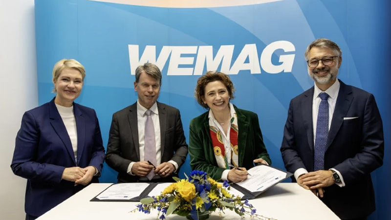 Werbung WEMAG-Netzinfrastruktur 10. Januar 202610. Januar 2026 PB: EIB-Vizepräsidentin Nicola Beer (3. v.l.) und WEMAG-Vorstände Caspar Baumgart und Thomas Murche unterzeichnen im Beisein von Ministerpräsidentin Manuela Schwesig den Darlehensvertrag / ©: Stephan Rudolph-Kramer
