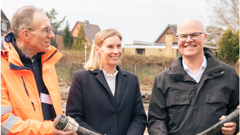 Werbung Kronshagen 1. April 20261. April 2026 PB: von links: Alexander Baumgärtner (VBK), Dr. Nora von Massow (Bürgermeisterin Kronshagen), Energieminister Tobias Goldschmidt / ©: MEKUN